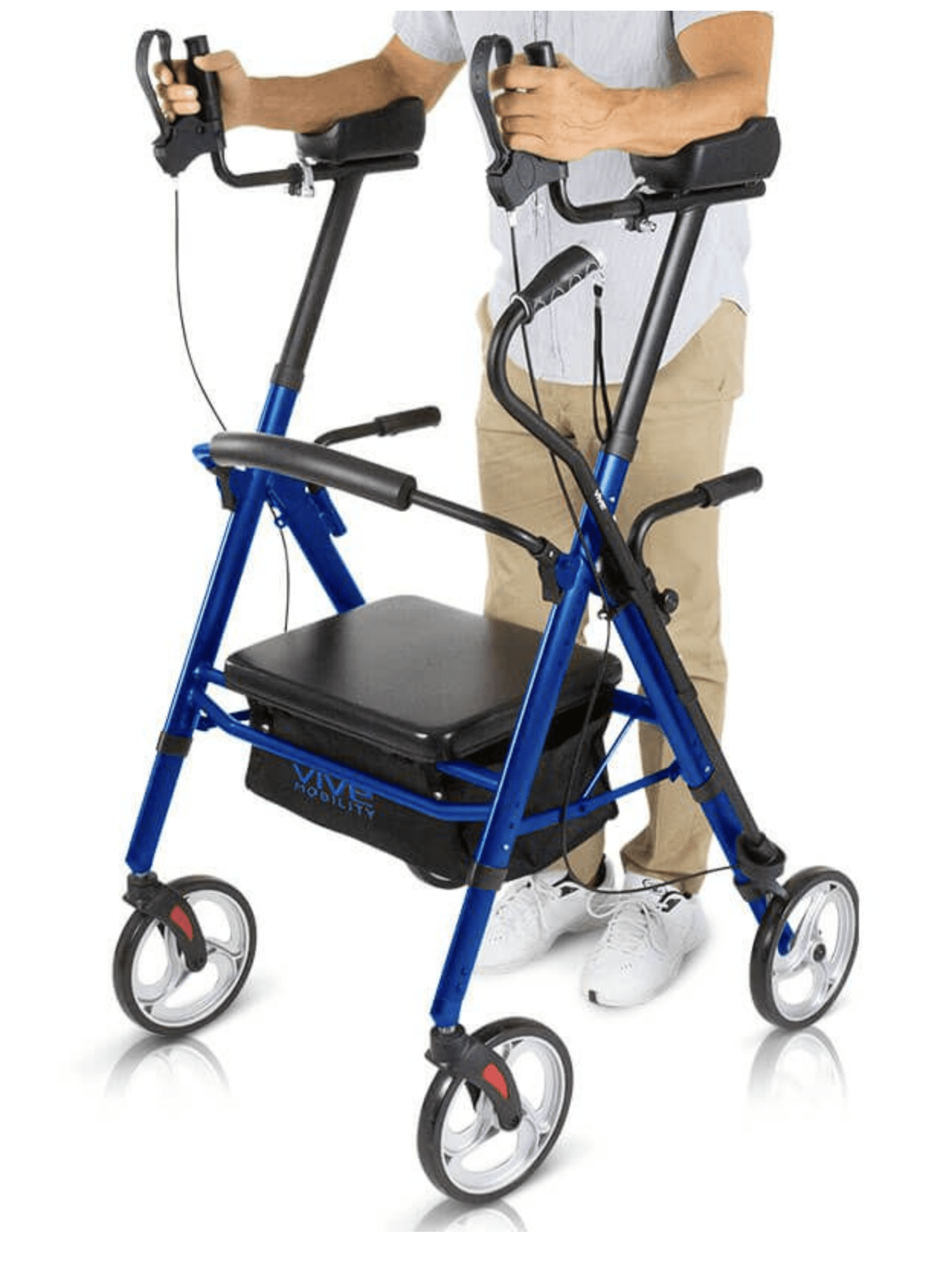 Functions as both a rollator and a transport wheelchair. Perfect for those who may want to walk part of the time and rest when needed. Sturdy, comfortable, and easy to operate.