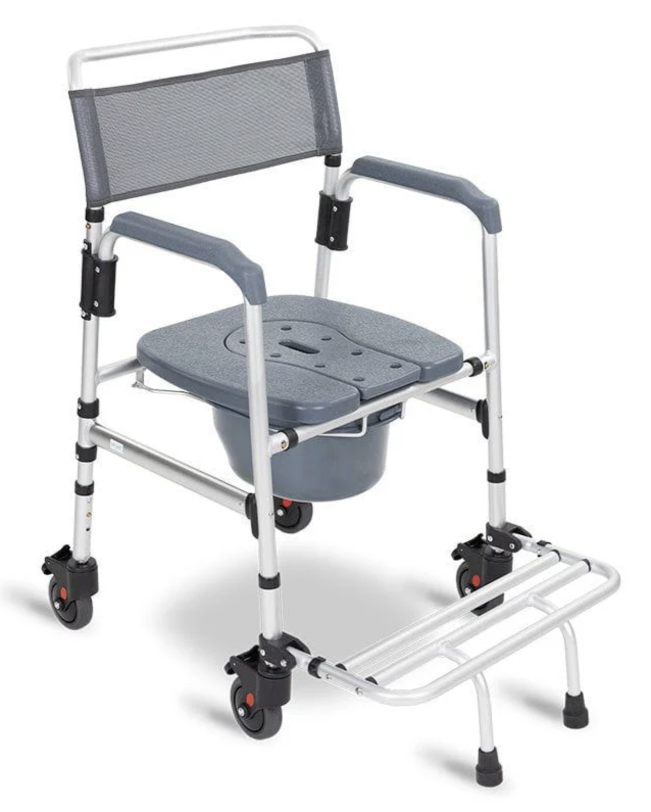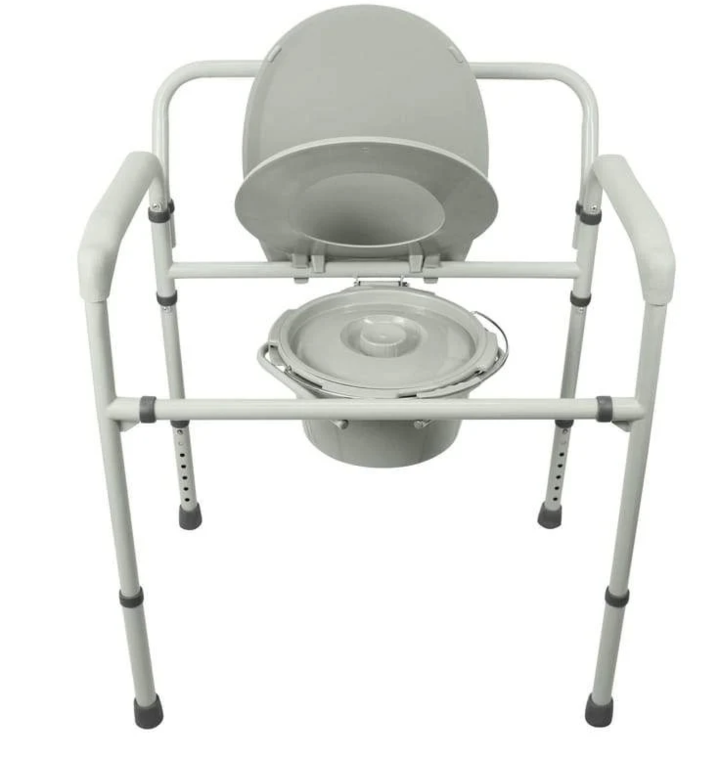 Strong and durable commode designed for users who need extra space and support. Can be used over the toilet or as a stand-alone unit. Ensures comfort, safety, and easy cleaning.